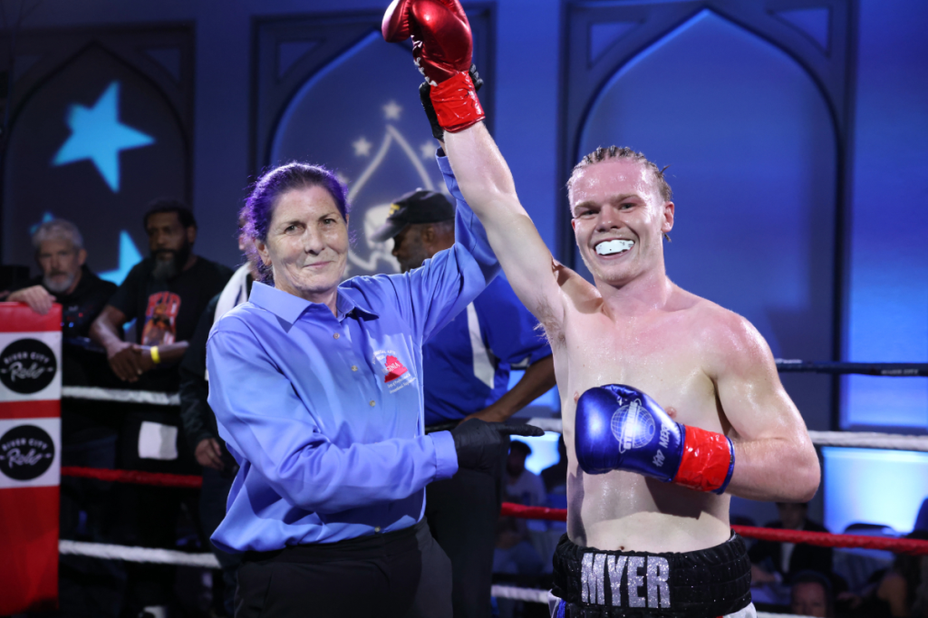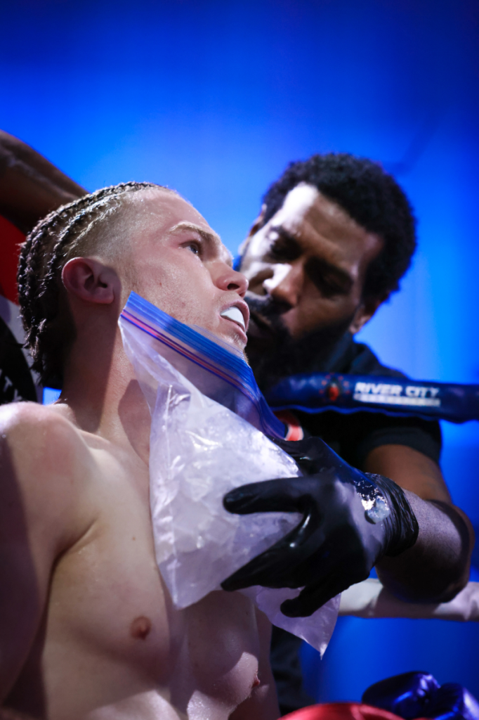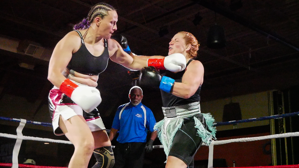 Women’s Bout: Carmen Gulliksen, fighting out of RVA’s Vintage Boxing Gym, scored a KO/TKO win over Anari Matthews just 1:50 into round one (light middleweight).
