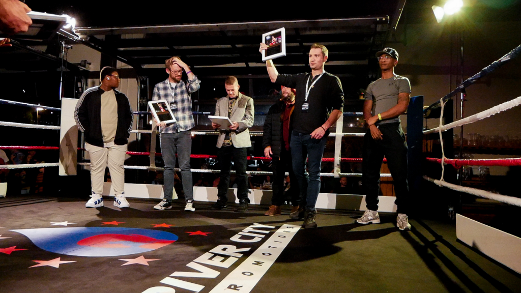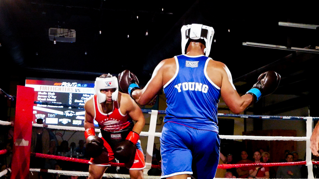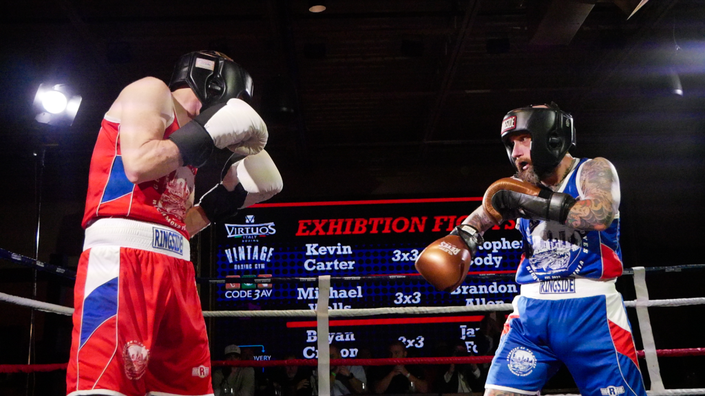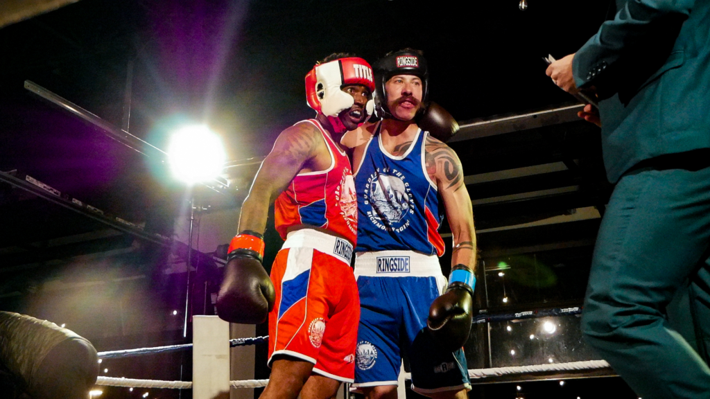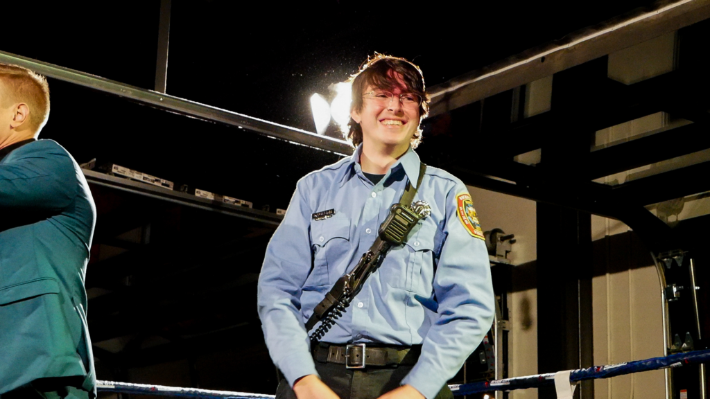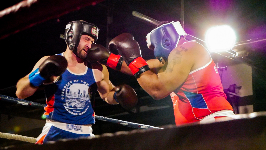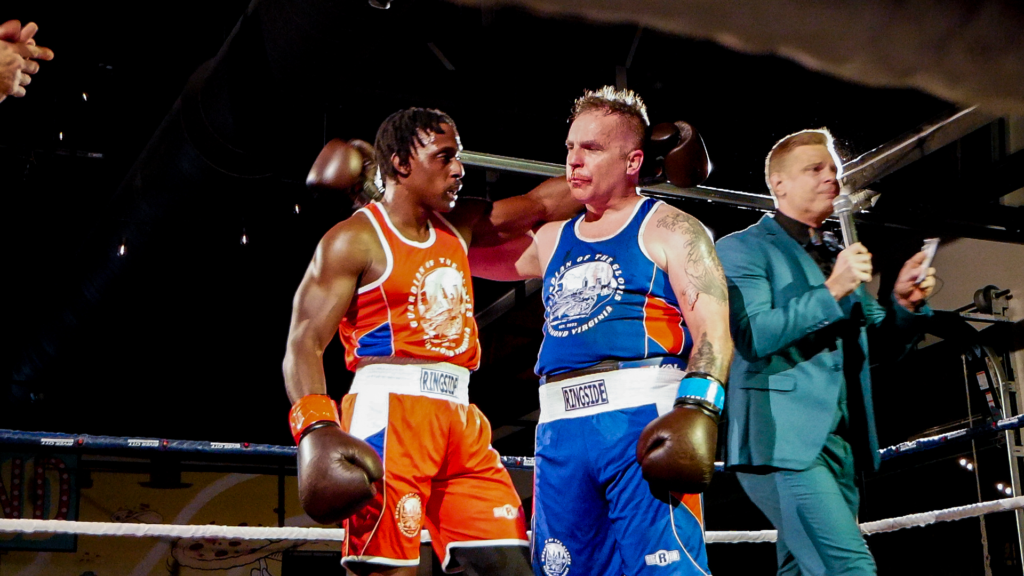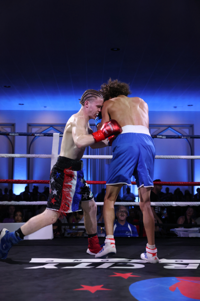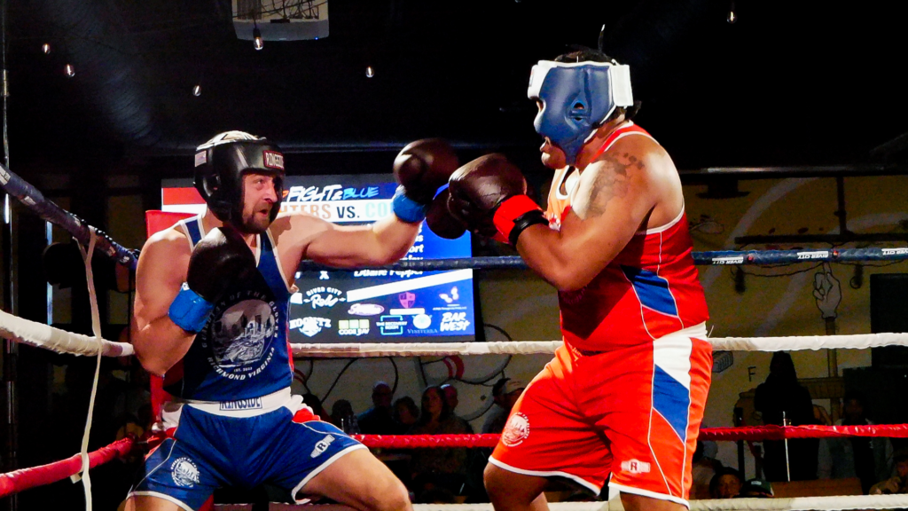 RED FIGHT & BLUE, presented by River City Promotions, took place on Wednesday, November 5th, 2025, at River City Roll in Richmond, VA as a part of the RIVER CITY FIGHT NIGHT series. Much like the last event, this event saw two professional matches alongside an amateur undercard. This time, though, there were five amateur bouts all with the theme of RVA police vs. RVA firefighters! The event was livestreamed on the RCP YouTube channel to hundreds of viewers. This electric night was held, much like the last event, in support of Guardian of the Gloves, though this time, funds were also allocated to The Children’s Hospital of Richmond and The American Kidney Fund!