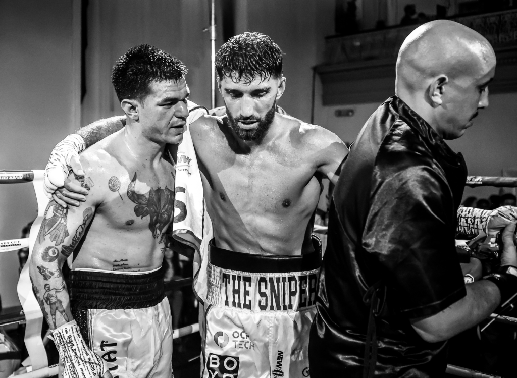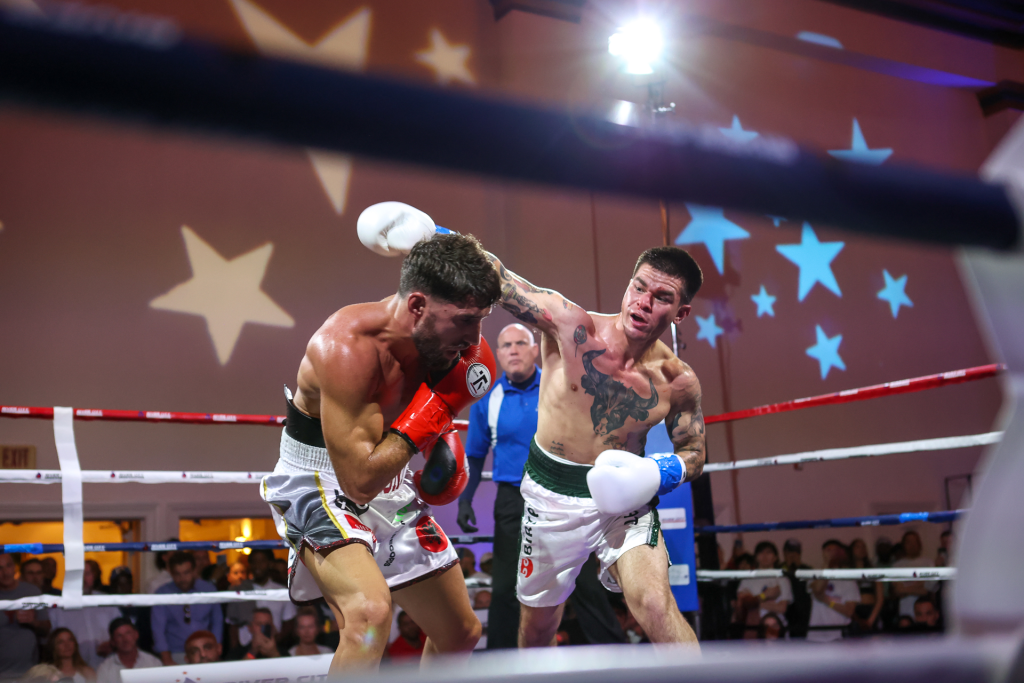 Main Event: Ermal “The Sniper” Hadribeaj (WBC International Super-Welterweight Champion), boasting an undefeated record of 15-0-1 (with 7 KOs), trained at the famed Boxr Gym in Miami Beach. He defended his title against Leonardo di Stefano Ruiz, a dynamic Spanish-Italian fighter (record: 11-1, with 10 KOs), holder of the GBU European and WBF Eurasia Championships.
